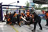 Norris får forsikringer på radioen om at det ikke vil bli noen undercut, og han godtar så at Piastri sendes inn i pit først av de to. Piastri gjør unna sitt stopp, og når det er Norris sin tur bruker mekanikerne alt for lang tid på å bytte de fire dekkene og sende briten ut igjen. Dermed havner Norris bak Piastri ute på banen, og dette velger McLaren å reversere ved å be Piastri slippe Norris forbi seg.