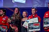 Marcus fikk med seg mamma Marit og lillesøster Synne opp på scena mens han mottok en velfortjent hyllest for seieren i talentkonkurransen som gjorde ham 300.000 rikere i retning et kommende bilsportbudsjett.Foto: Simen Næss Hagen / Parc Fermé