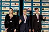 Norgesmester i klasse 1 supernasjonal t.o.m. ccm 1600 Jens Hvaal flankert av sølvvinner Andrine Rafoss og bronsevinner Mats W. Marthinsen.Foto: Joakim Stenløs / Parc Fermé