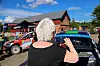 Farmor Tove er naturligvis på jobb som nettopp farmfor, og behersker moderne teknologi til å gjennomføre ett av sine aller viktigste arbeidsoppgaver som farmor; nemlig å dokumentere begivenhetens gang. Vi gir også skryt for å fotografere i breddeformat.Foto: Simen Næss Hagen / Parc Fermé