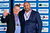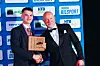 Olav Vaa ble tildelt bilsportsjournalistenes Eugen-pris. Her med NBF-president Glenn Mellegaard.Foto: Joakim Stenløs / Parc Fermé