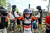 Oliver Solberg gratuleres av pappa Petter med seieren i 85-klassen i crosskart på Krabyskogen i 2011. (Foto: Simen Næss Hagen)